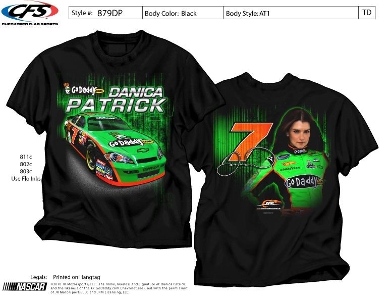 Danica Patrick #7 Go Daddy.com Chevy on the front with her picture screen printed on the back of a black medium (M) short sleeve tee shirt. It was made for JR Motorsports by CFS.Last one left. great collector's tee..
