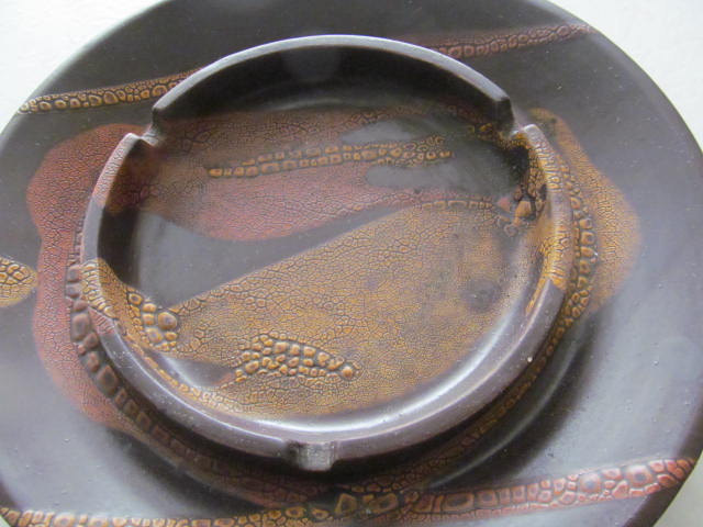 Hand Glazed Pottery Collectible Round Ashtray