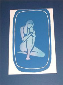 UNTITLED "BLUE NUDE LADY' LITHOGRAPHIC POSTER MATTED PRINT