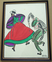 Artist -Odile, Untitled "South American Dancers "Hand Painted Gouache Art
