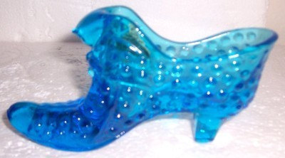 Vintage Fenton Turquoise Hobnail Miniature Collectible Glass Shoe/Slipper
