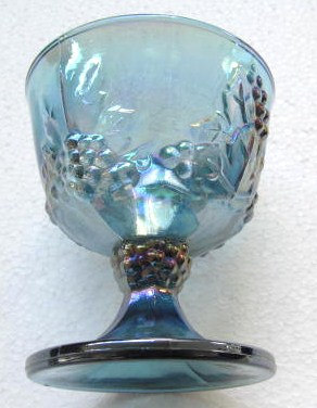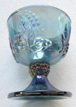 BLUE CARNIVAL GLASS COMPOTE IN THE HARVEST GRAPE PATTERN