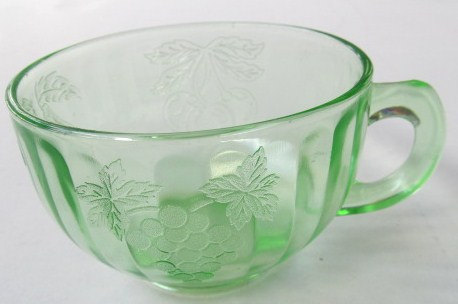 Hazel Atlas "FRUITS" Green Cup & Saucer Depression Glass Collectible