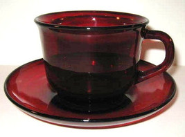 Vintage Circa 1960's Arcoroc (1) Ruby Red Glass Cup & Saucer Set Made In France