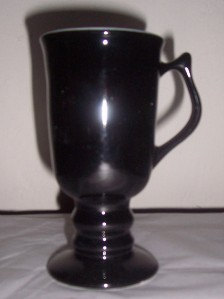 HALL'S Ceramic Onyx Black Color Pedestal Large Collectible Glass Coffee Mug