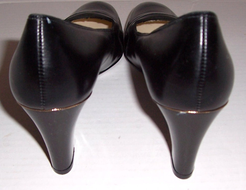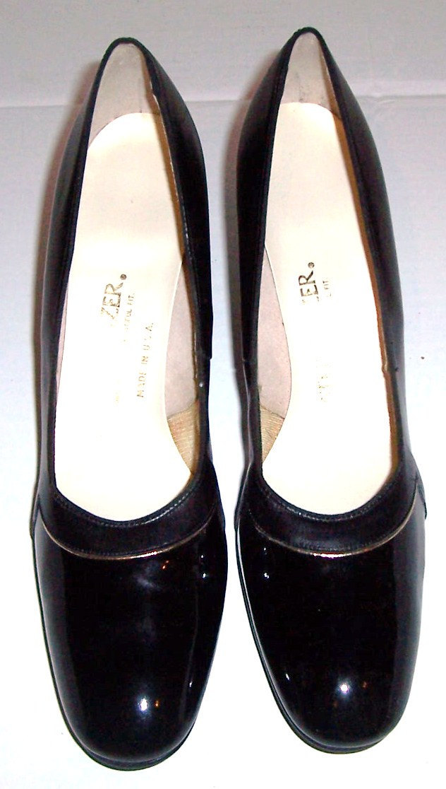 Vintage Naturalizer Ladies Black Patent Leather Shoes With Gold Trim Design SIZ