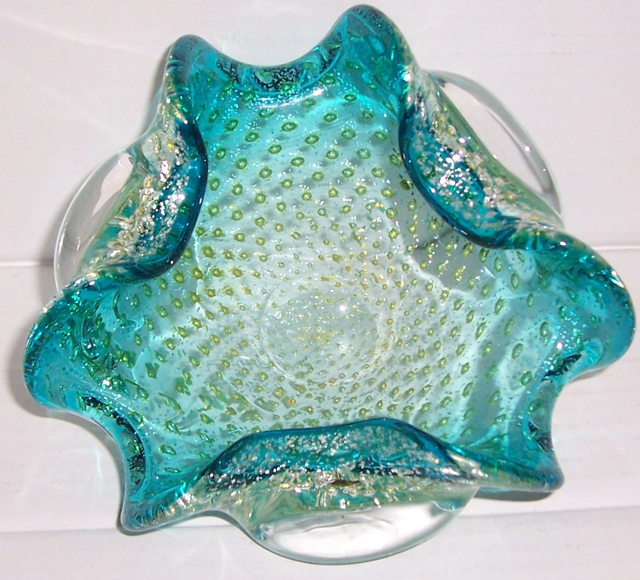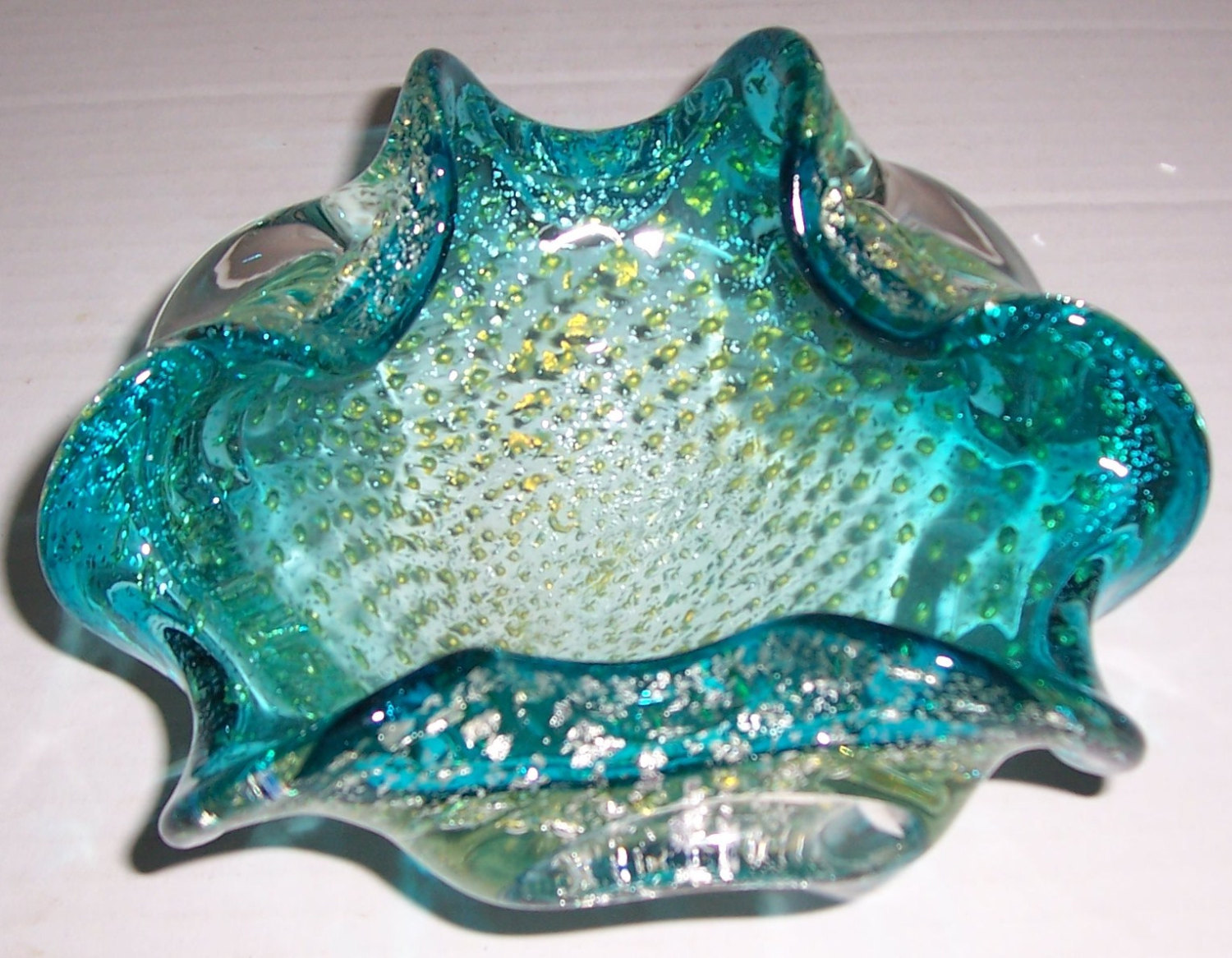 Murano Hand Blown Turquoise Blue Bullicante Stardust Designed Glass Art Display