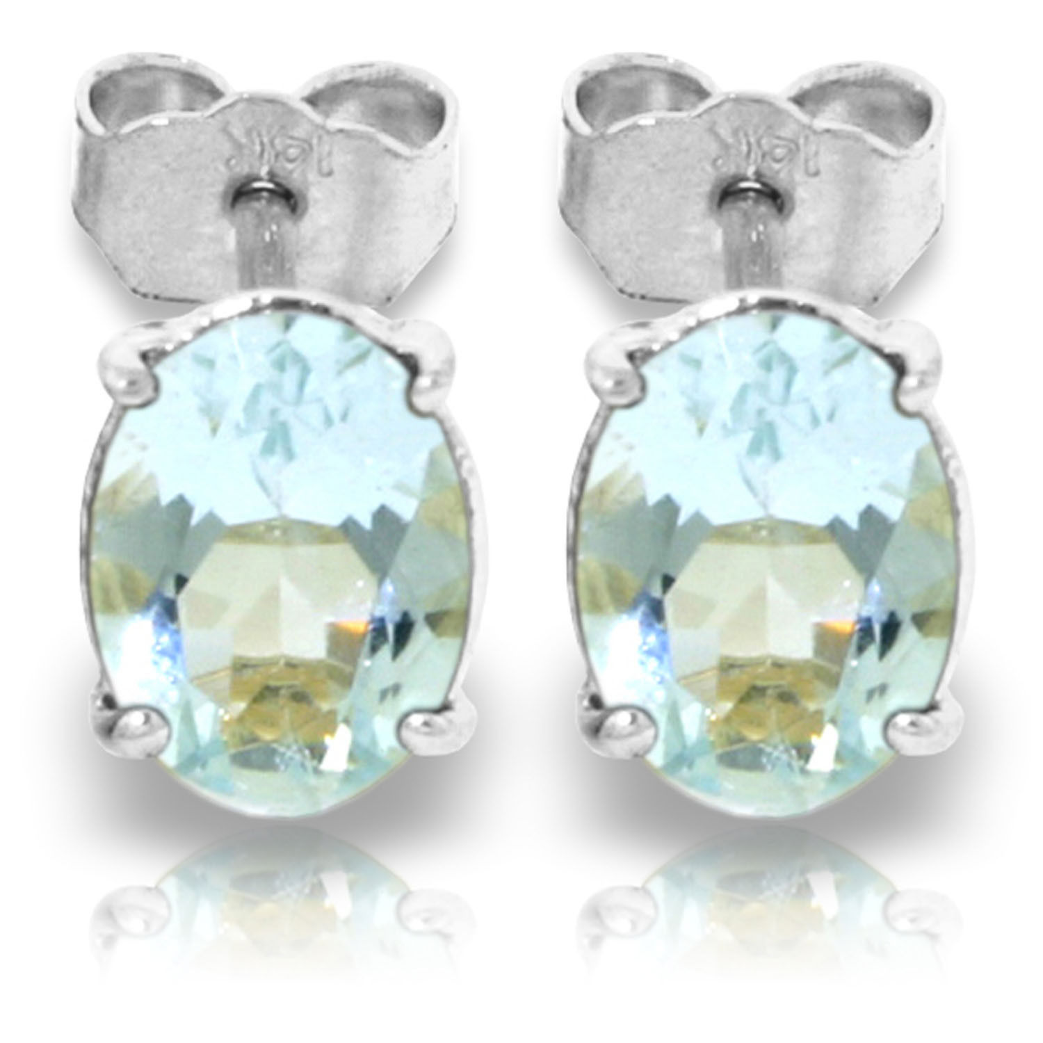 1.8 CTW 14K Solid White Gold Stud Earrings Natural Aquamarine