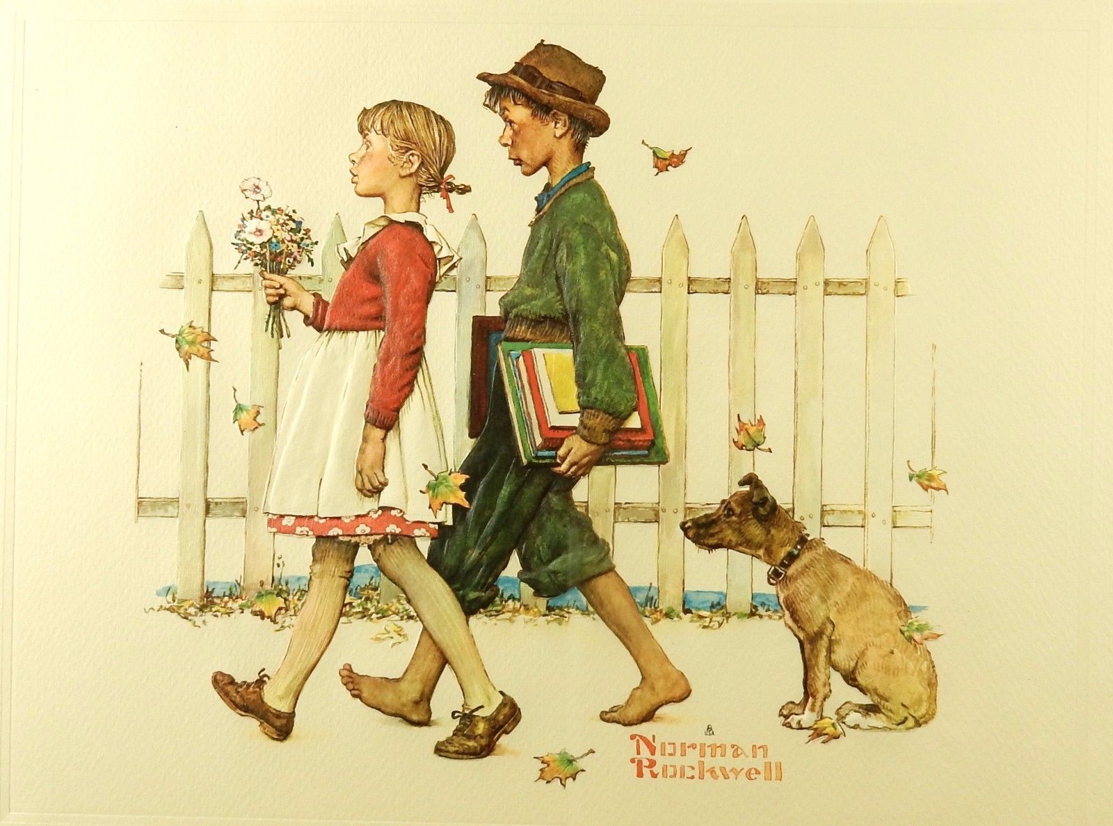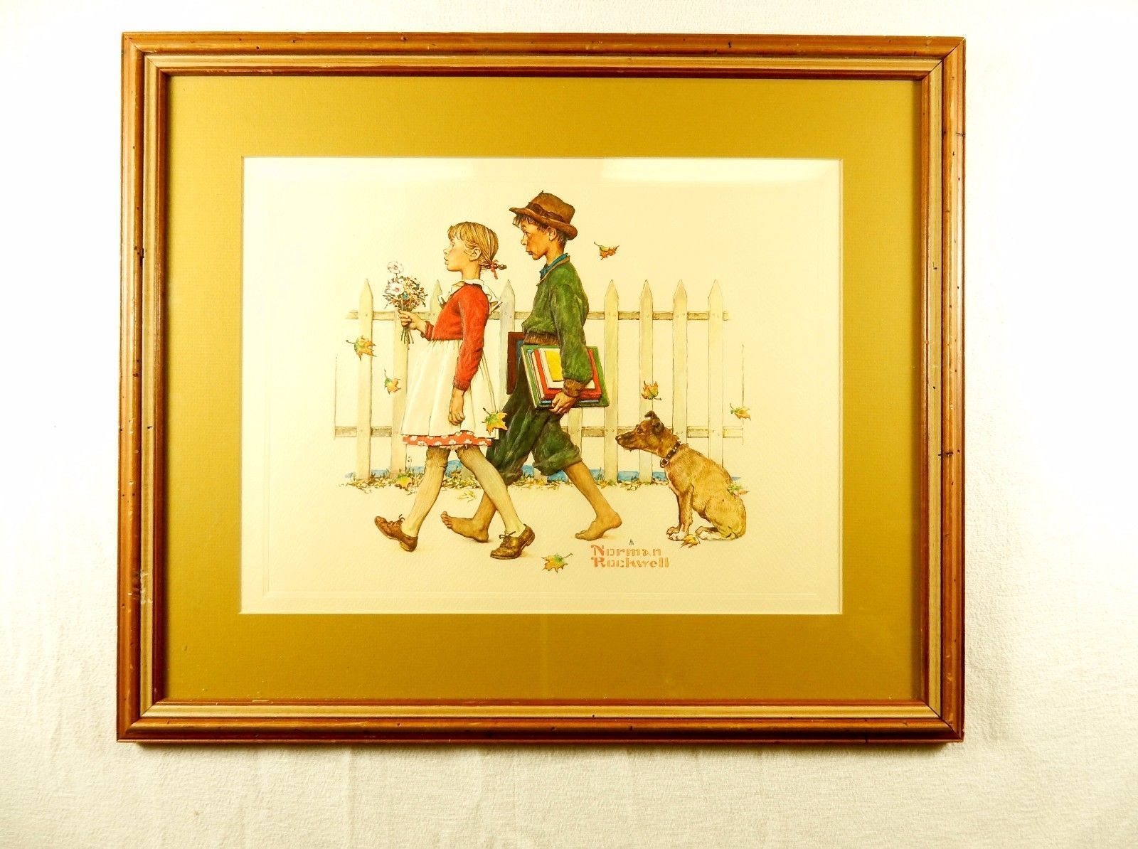 Norman Rockwell 12 x 15 Print "Young Love Walking To School", 22 x 18 Wood Frame