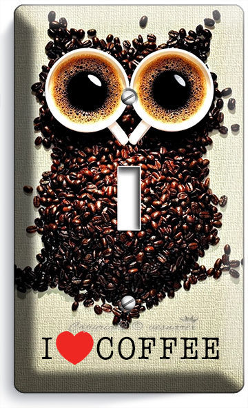 I LOVE HEART COFFEE BEANS OWL SINGLE LIGHT SWITCH WALL PLATE COVER HOUSE DECOR