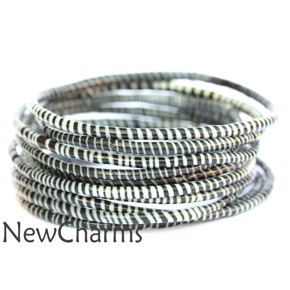 10 Black with White Recycled Flip-Flop Bracelets Hand Made in Mali, West Africa. Our hand-made bracelets are made in Africa by women who work to support themselves (and often their families). They are paid a fair wage and we work with a fair-trade importer to receive the bracelets.