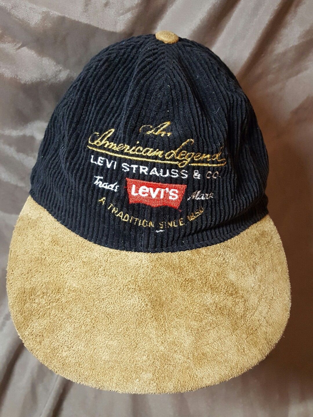 Rare Levis Strauss tan suede bill black Corduroy baseball Cap Hat suede strap