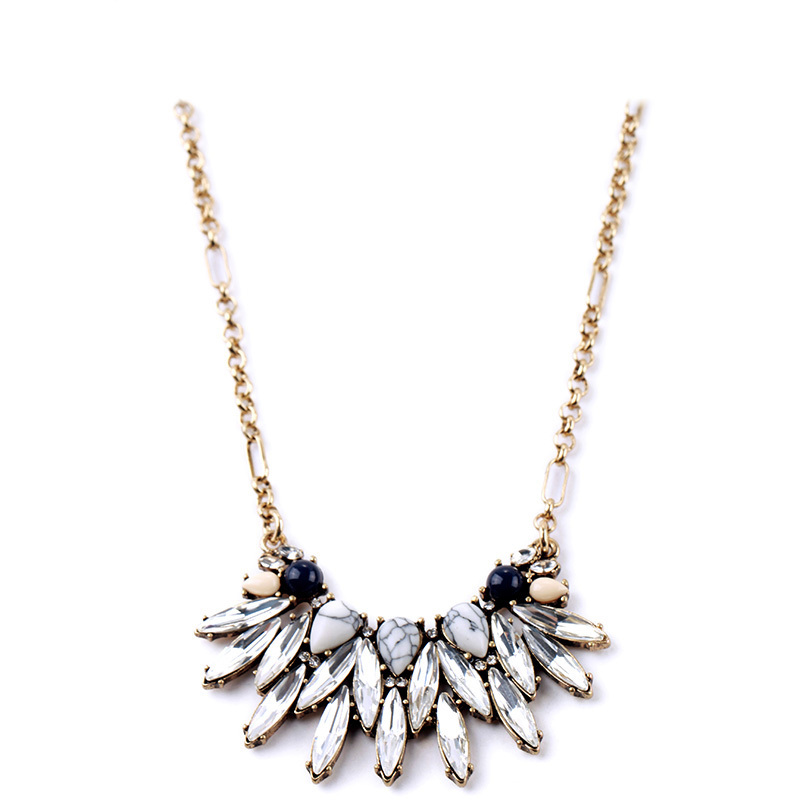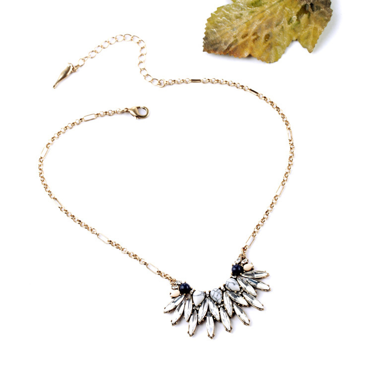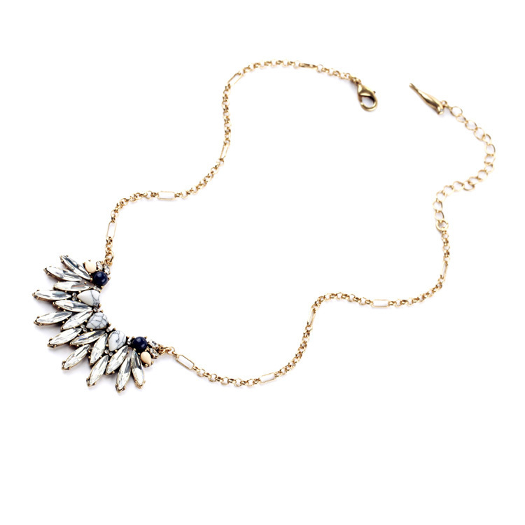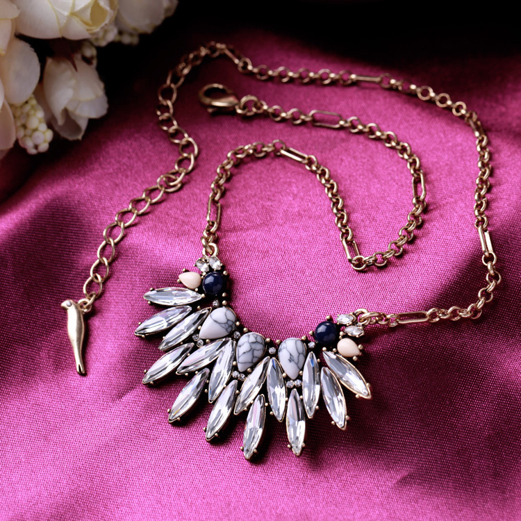 Semi-precious howlite cabochon pears paired with navy, light pink, and clear crystal navettes form a mini-statement pendant perfect for every day.