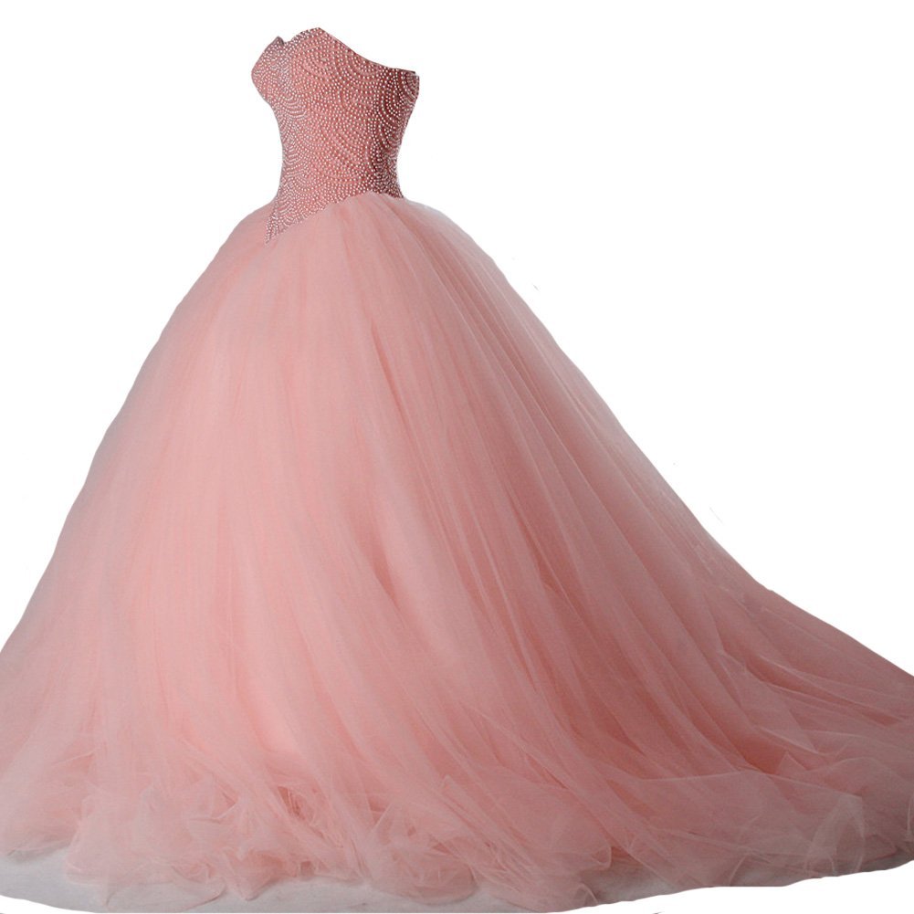Tulle long ball gown sweetheart pearls women formal dresses, it can also be used as prom dresses, quinceanera dresses, holiday dresses, party dresses, women beauty dresses, women pageant dresses, wedding dresses, birthday dresses, sweet 16 etc. Lace up back, plus size available