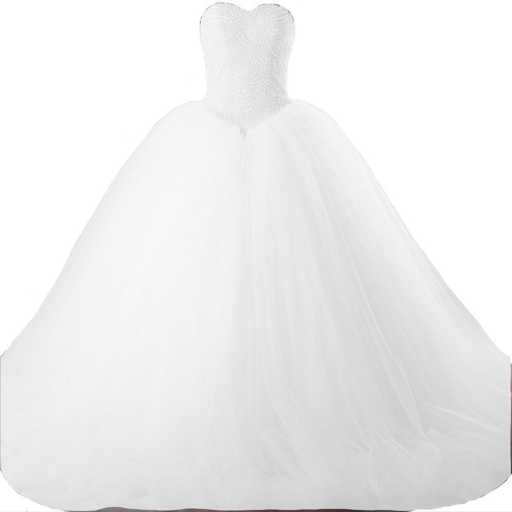 Kivary Sweetheart Pearls Long Ball Gown Tulle Corset Prom Wedding Dresses White