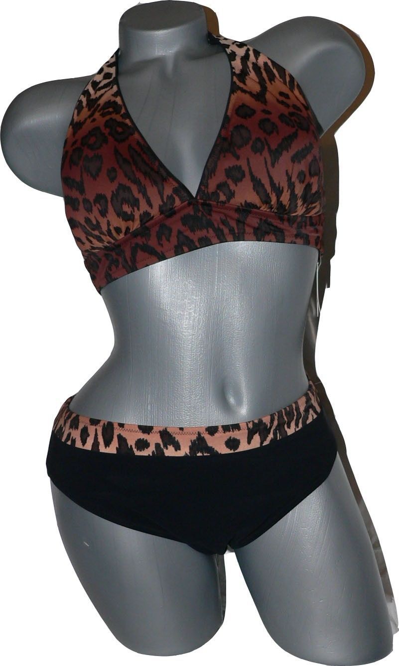 NWT GOTTEX leopard cheetah bikini swimsuit halter 10 M 2PC browns black animal