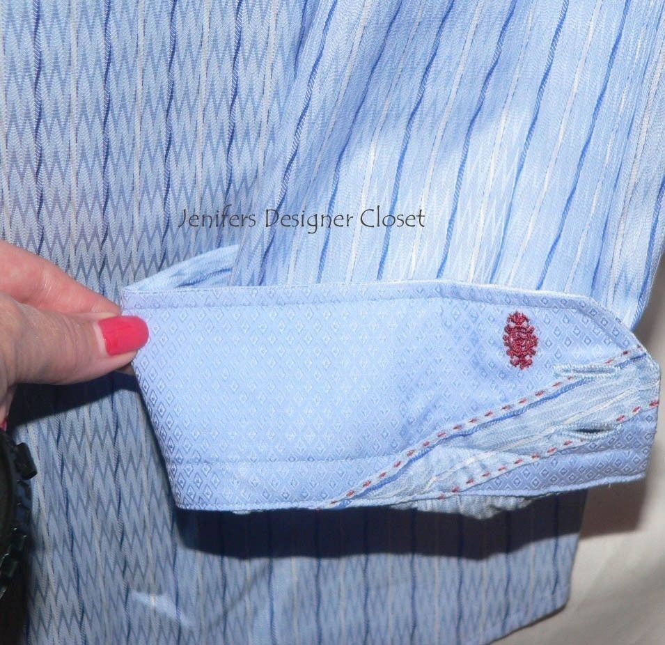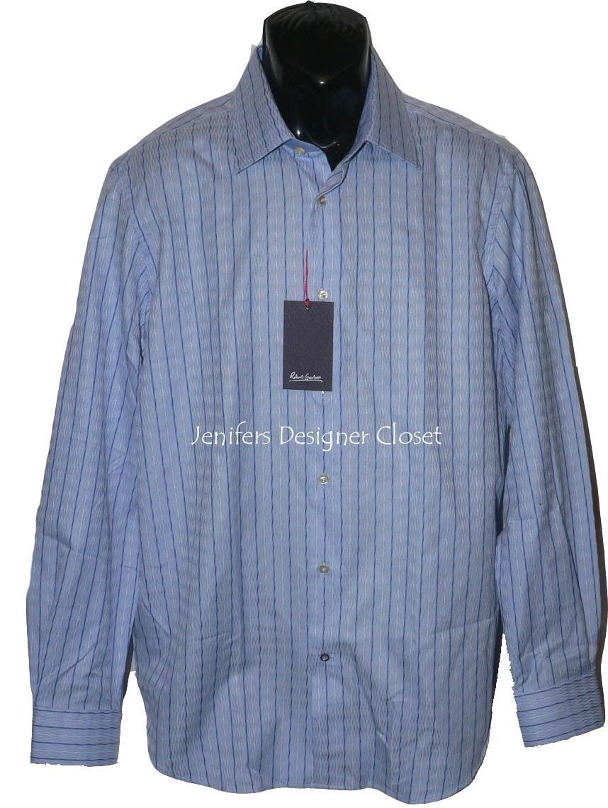 NWT ROBERT GRAHAM Size-16.5 42 dress shirt blue white striped luxury designer
