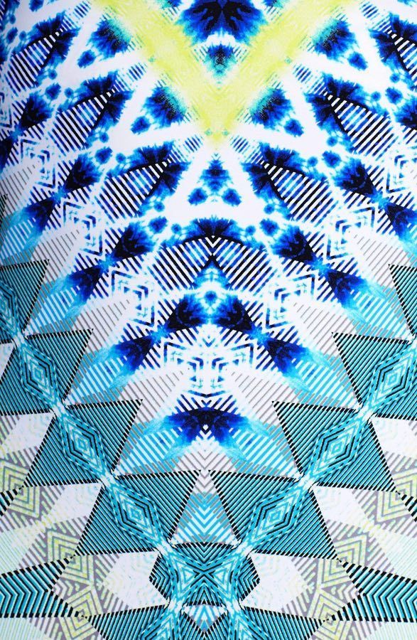 Awesome, new with tags, sexy runway swimsuit by RED CARTER! A stellar print is strategically placed to slim the figure in this deep-V neck maillot designed with a flirty tasseled halter tie and neon lace-up back.