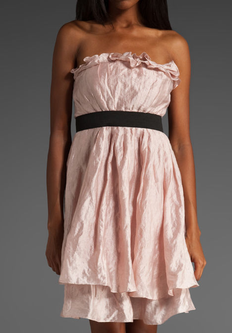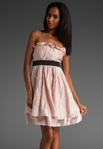 NEW LaROK strapless ruffled mini dress designer M pink metallic sheen frilly