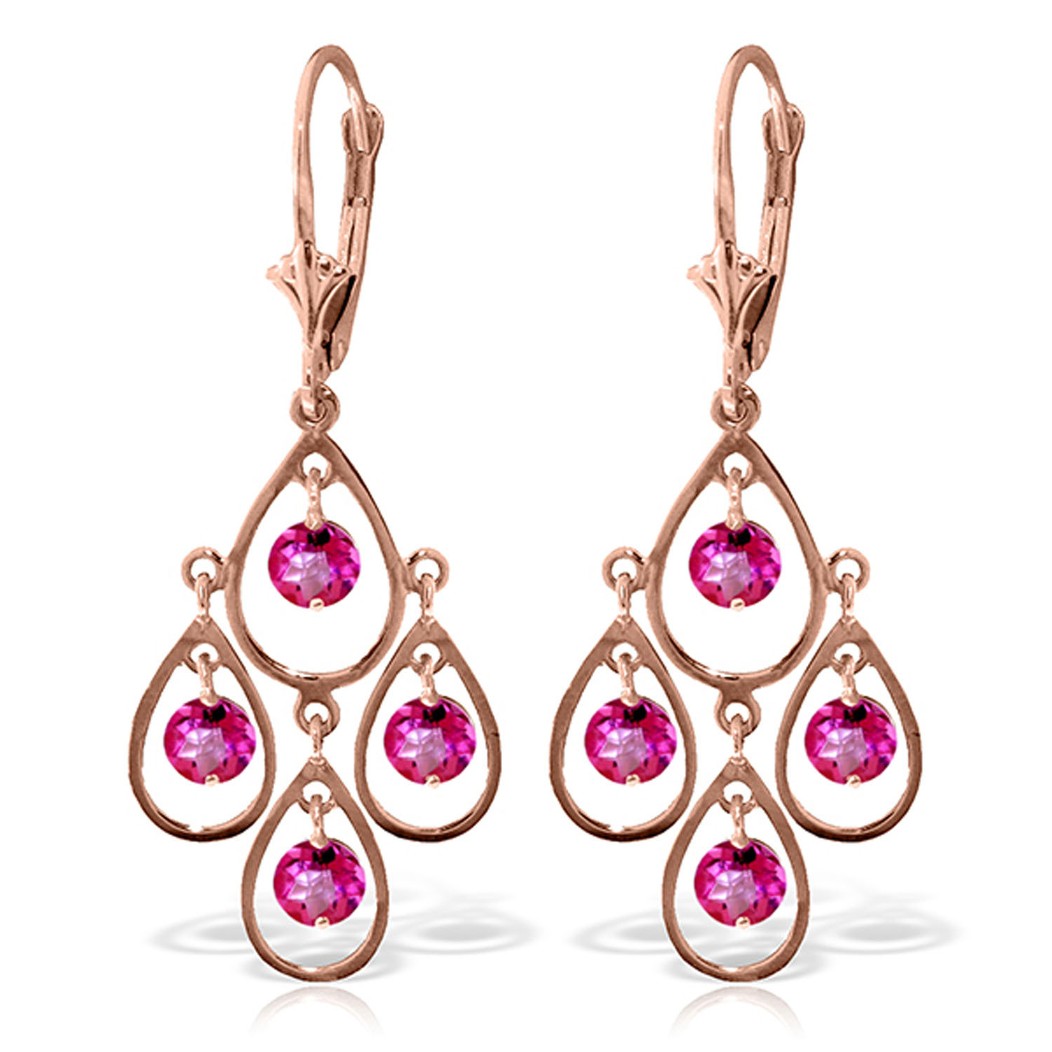 Pink is the color of love and beauty, so it's no surprise that these 14k rose gold chandeliers earrings with pink topaz are beautiful and loved by anyone that buys them. Pink topaz is special and unique, since topaz is typically a golden yellow. The gold components of these earrings enhance the pink color and make the stones stand out as a sparkling accent. The gold is also changeable to white or rose gold. Dangling at 1.62 inches, these sassy earrings are for bold women that want to make a statement and demand all eyes on them. Show them off with an up-do for best results.