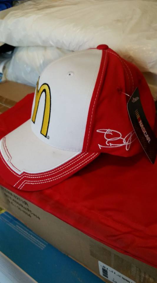 Jamie McMurray #1 Mc Donald's new red and white ball cap by CFS. Has a rear adjustable velchro strap with NASCAR on it. Jamie's signature on one side and the #1 on the other side. Only one left..buy it now