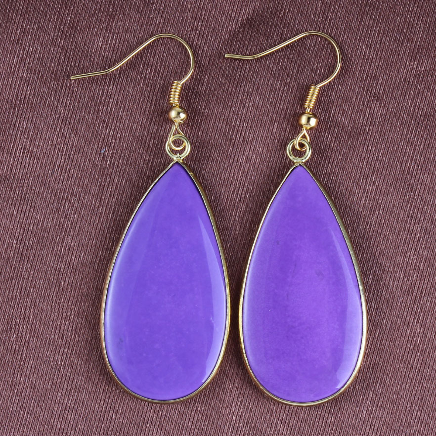Genuine Purple Howlite Stone Gold-Plated Drop Earrings
