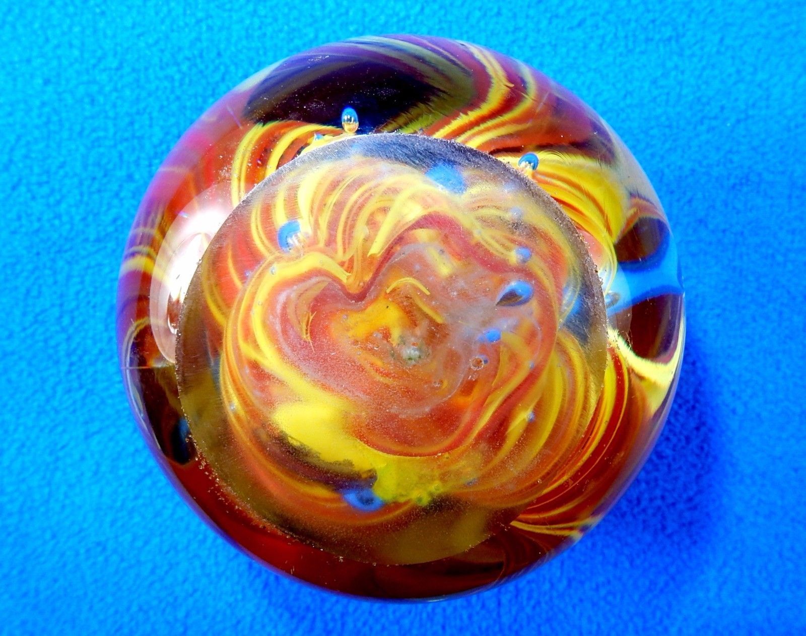Glass Paperweight, Small 2.5"/12 oz ~ Brown & Yellow, Controlled Bubbles, #PW-09