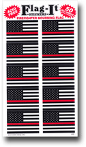 Includes one pack of 50 stickers. Our Thin RedLine (USA) flag stickers are great for games, rewards, incentives, education, envelope seals and souvenirs. Self-adhesive 1"x1.5" high quality stickers 50 per pack The Thin Red Line is a symbol used by fire departments to show respect for firefighters injured and killed in the line of duty.