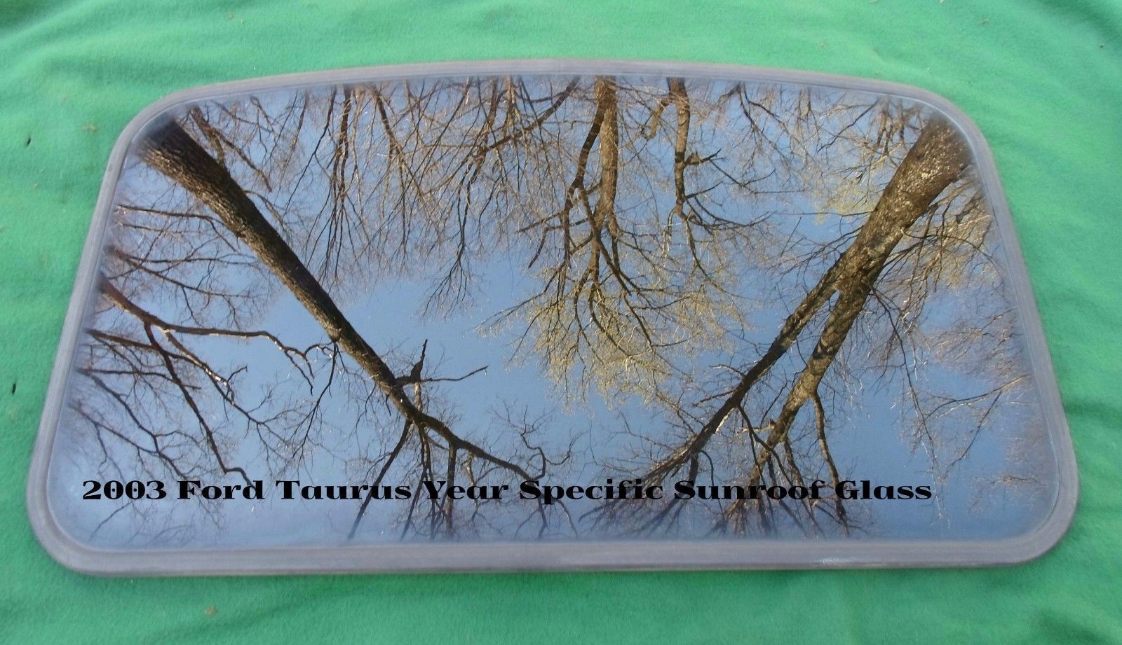2003 Ford Taurus OEM Factory year Specific Sunroof Glass panel. The sunroof is in good used used condition. Measurements are 32" long and 17 7/8" wide. **This sunroof came on Taurus model year 2003 but please double check your measurements to ensure a perfect fit. Aftermarket sunroofs have become very popular over the last 10 years, if your sunroof switch looks like any in our last picture, you have an aftermarket, not a OEM. This is why it is so important to double check your measurements and bolt patterns and compare them to our listing and pictures. Be wary of sellers stating this sunroof will fit other years, it will not, this glass panel was specific to model year 2003 in the Taurus Line. This glass panel was removed from a 2003 Taurus that had a blown engine so there is no unseen damage on this panel as is found with a majority of sunroof glass panels that are removed from wrecked vehicles. Often times on a wrecked vehicle, the metal trim around the glass, under the seal, will incur slight bends which will make the panel leak soon after. We have been dealing in sunroof glass panels for 10 years now and only sell the panels that come through our shop that are off of vehicles that have not been in major accidents. We also 100% inspect and clean the panels, especially the seals, in an effort to identify any imperfections that may cause issues down the road. The sunroof comes read to bolt in. 3 bolt pattern on this sunroof. Please contact us with any questions that you may have.