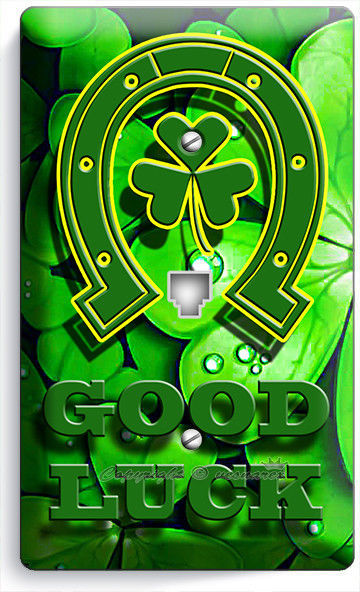 LUCKY CLOVER GOOD LUCK HORSESHOE PHONE TELEPHONE WALL PLATE HOME ROOM ART DECOR