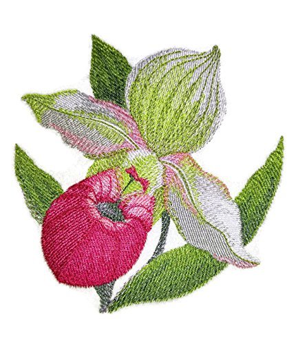 Custom Watercolor Lady Slipper Bloom embroidery patch. Absolutely superior quality patches which can be ironed or sewed on any garment. This patch is made of the finest embroidery thread and cotton base. Finest quality money can buy. Steps to iron it on the garment are listed below: 1. Set Iron to Cotton 400 degrees, for one minute. 2. Thoroughly iron area of garment where patch will be placed. 3. Spray water lightly on the back. Position your patch where you desire, Place it on garment, embroidery facing up. 4. Place cloth or light towel over patch and using a slow circular motion, press firmly for 30 seconds. 5. Turn garment inside out, and iron the back of the the patch for 30 seconds. 6. Let cool for one minute. If edge of patch can be lifted, repeat step 5.