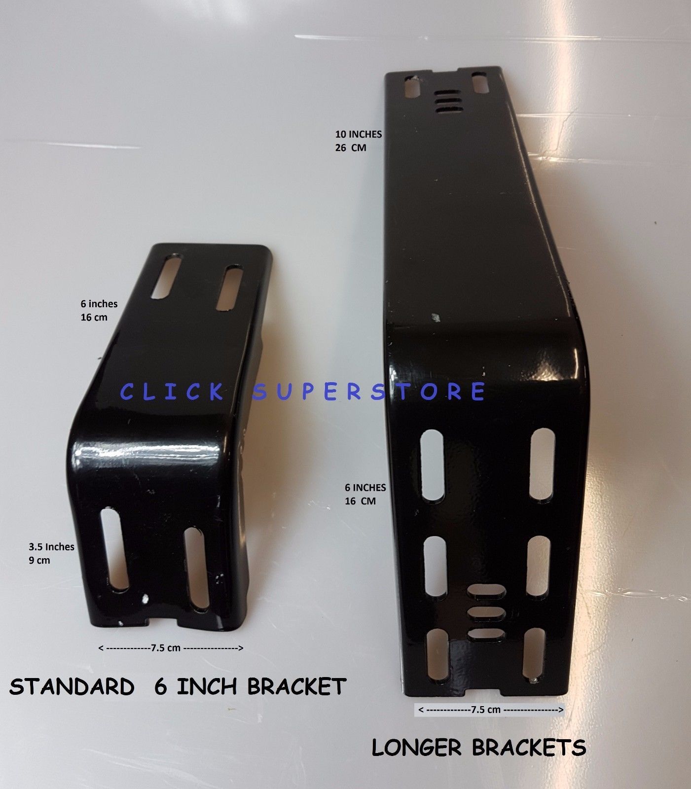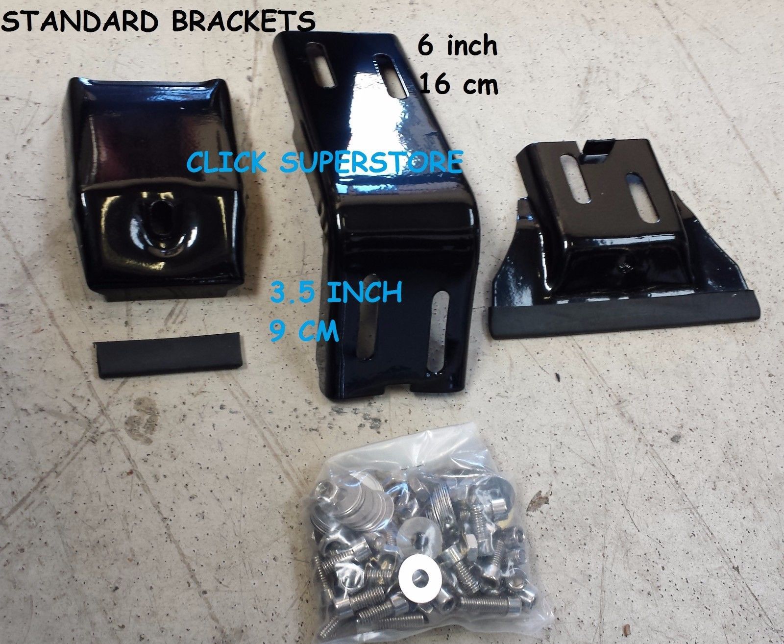The roof rack will be supplied with STANDARD 6 inch brackets which can adjust both horizontally and vertically. If you require longer brackets we can supply on request 10 inch Longer Brackets instead. Please see the picture and if you feel you need the Longer adjustable brackets please email us after placing your order