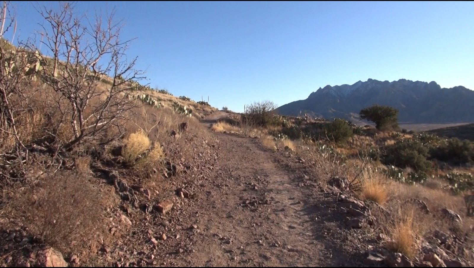 Filmed with Broadcast quality cameras you are constantly being moved forward, transported along the hiking trail. You are "experiencing" a beautiful late day and early evening in New Mexico.