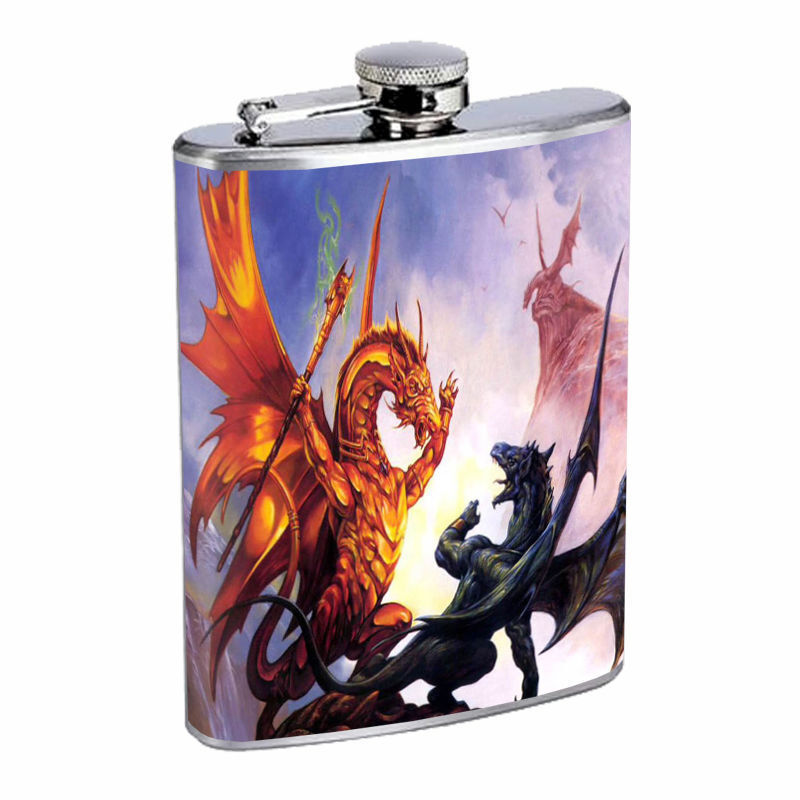 Dragon Fantasy Creature D8 Flask 8oz Stainless Steel Hip Drinking Whiskey