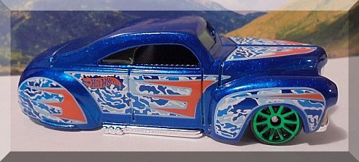 Description: Candy Blue, w/Black interior, Green windows, White, Orange, and Light Blue Camouflage Scallop design on hood and sides, Chrome Malaysia Base, w/GreenChr10SPโs. 092917-092917P-D22