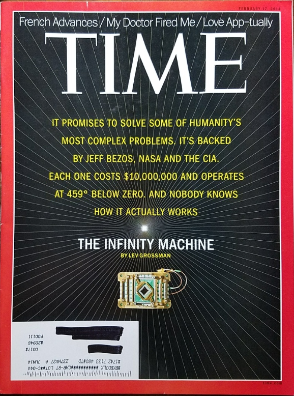 Time Magazine February 17, 2014 features on cover, The Infinity Machine.