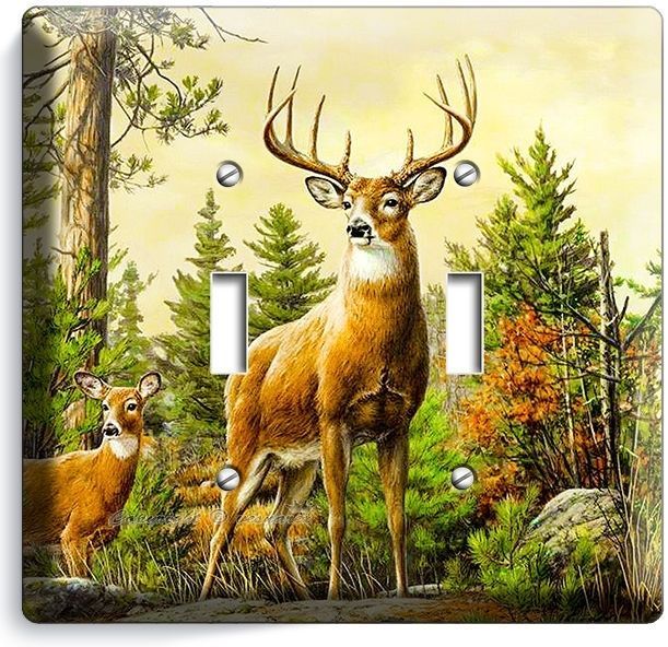 WHITETAIL WILD DEER BUCK ANTLERS DOUBLE LIGHT SWITCH WALL PLATE COVER HOME DECOR