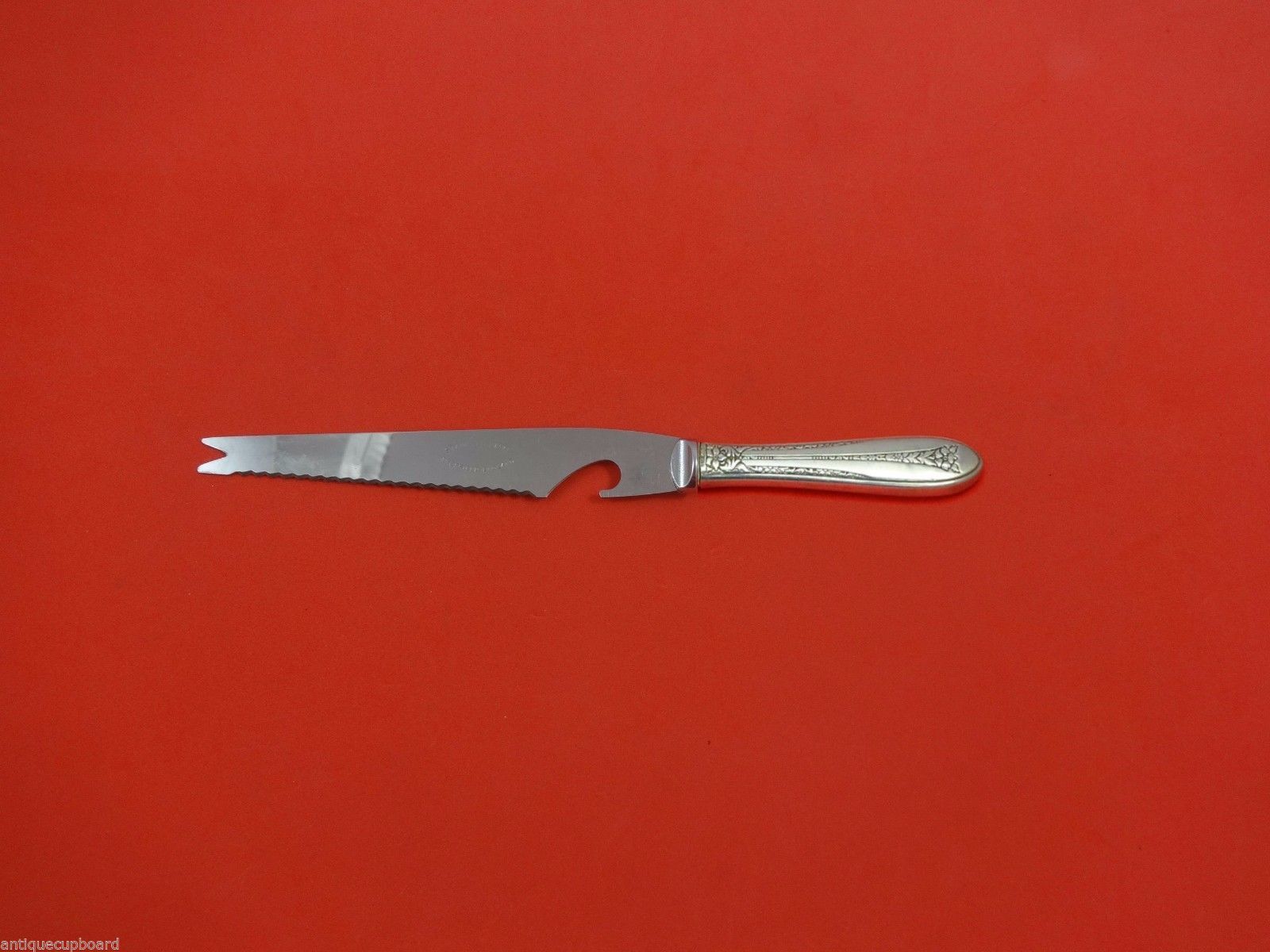 Sterling silver hollow handle with stainless implement BAR KNIFE CUSTOM MADE 9 1/8" in the pattern MARGARET ROSE BY NATIONAL. It is NOT monogrammed and is in excellent condition.