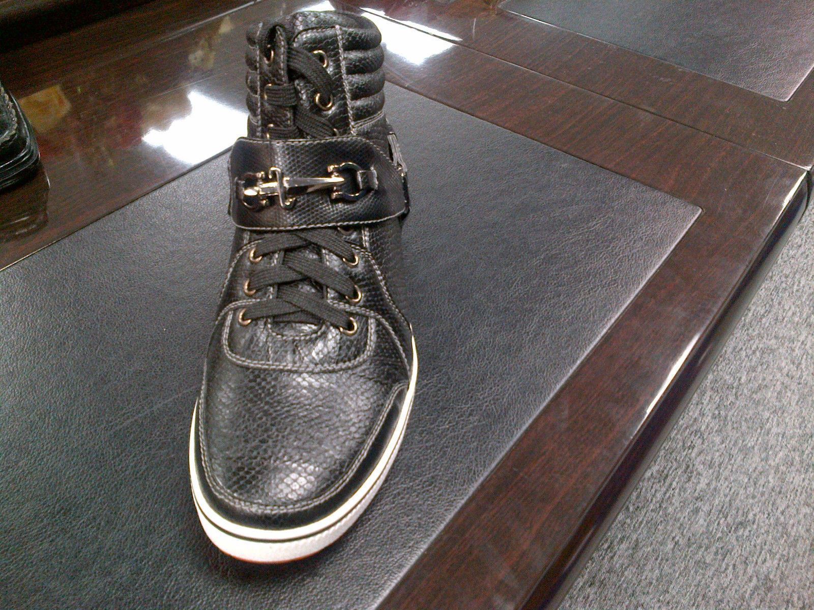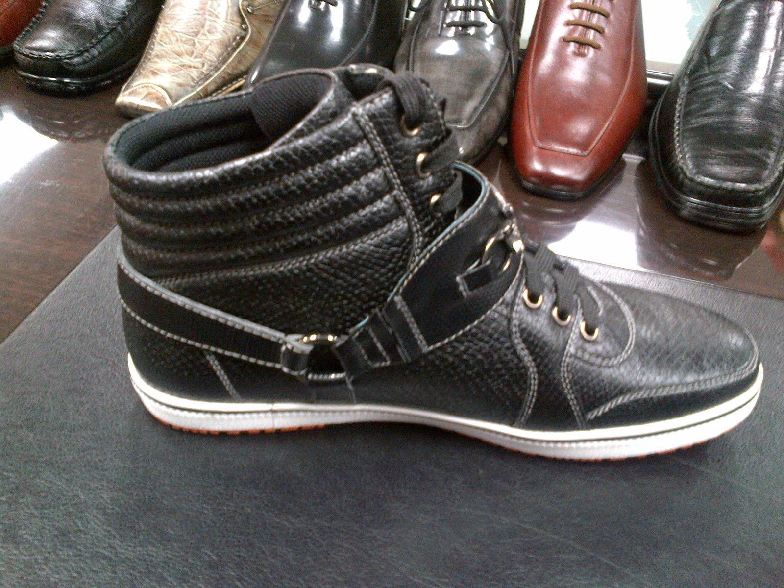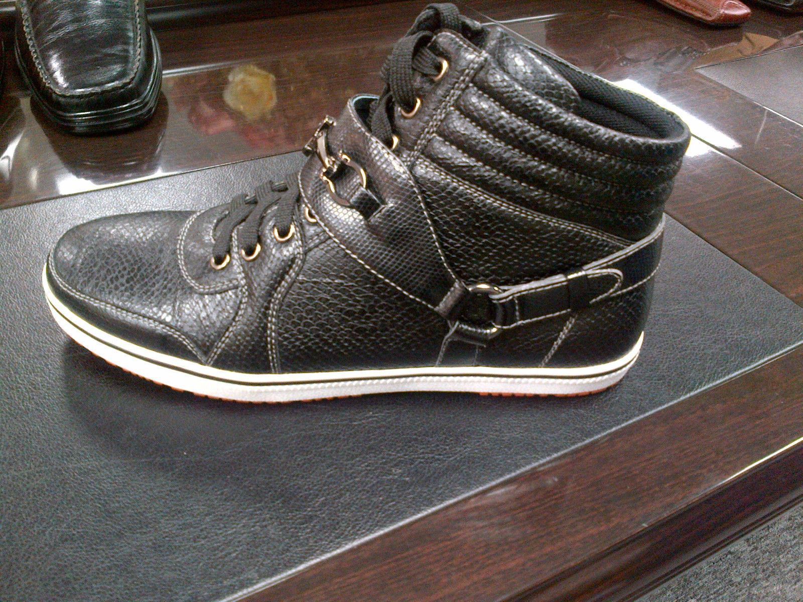 Description: Mens high top sneaker boot with metal buckle strap. The boots are made of comfortable and durable synthetic man made material to last everyday wear. New shoe strings. They are perfect for dress and casual wear. This is a mulit purpose occasion boot. The boots are new, trendy and current for todays looks and styles.