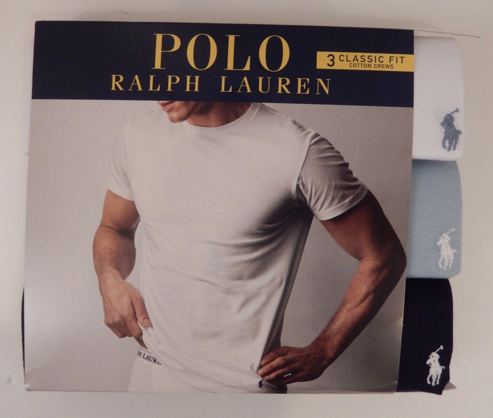 3 PACK POLO RALPH LAUREN S M L XL COTTON WHITE BLUE CREW T-SHIRTS UNDERSHIRTS