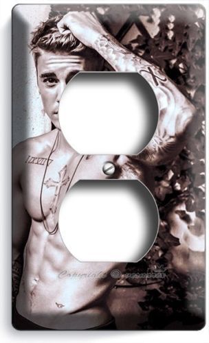 JUSTIN BIEBER TATTOOS NAKED TORSO DUPLEX OUTLET COVER PLATE TEEN GIRL ROOM DECOR
