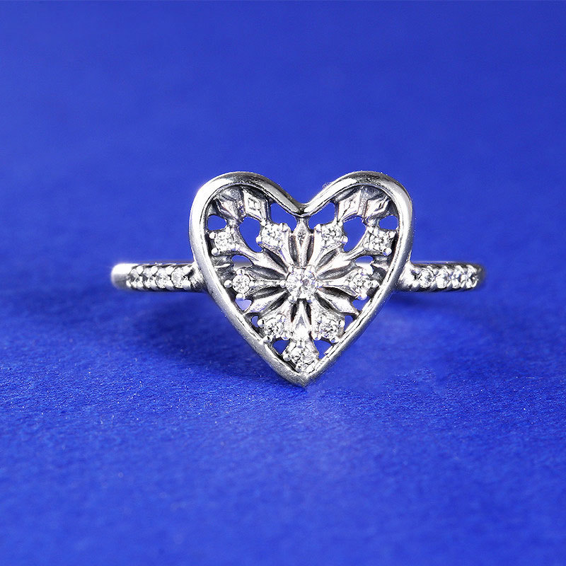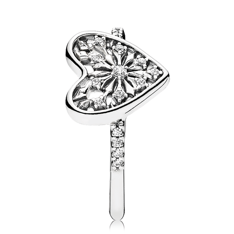 925 Sterling Silver Heart of Winter with Clear Cz Ring