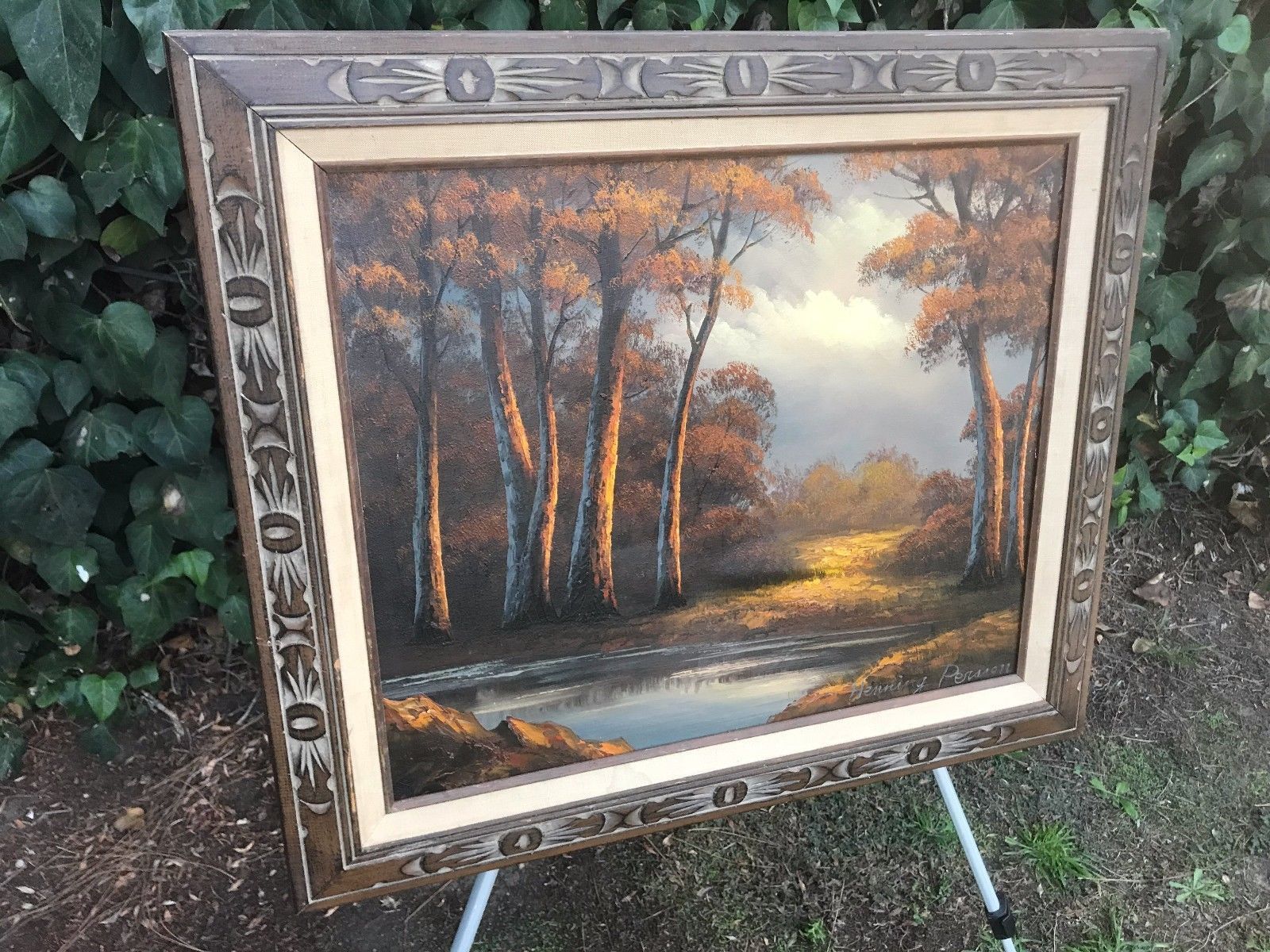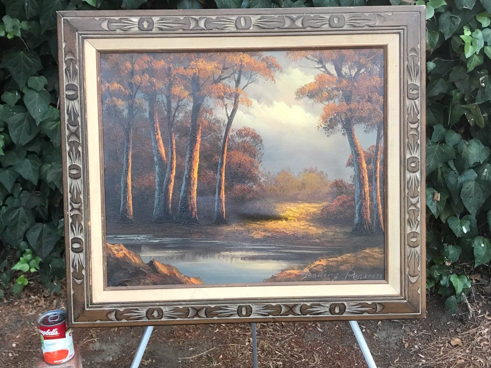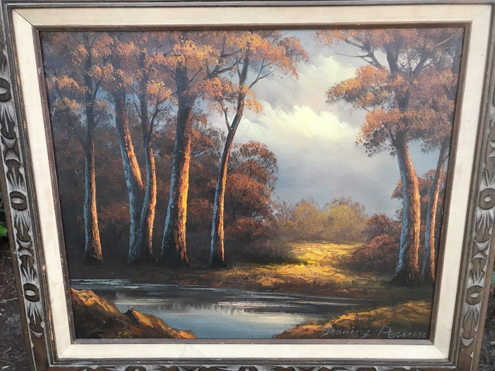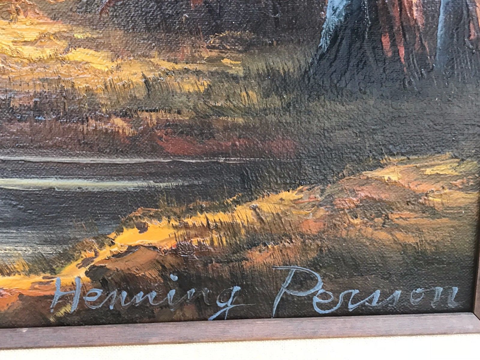 HENNING PERSSON Original 1940s WW2 ERA LANDSCAPE SIGNED OIL PAINTING ON CANVAS
