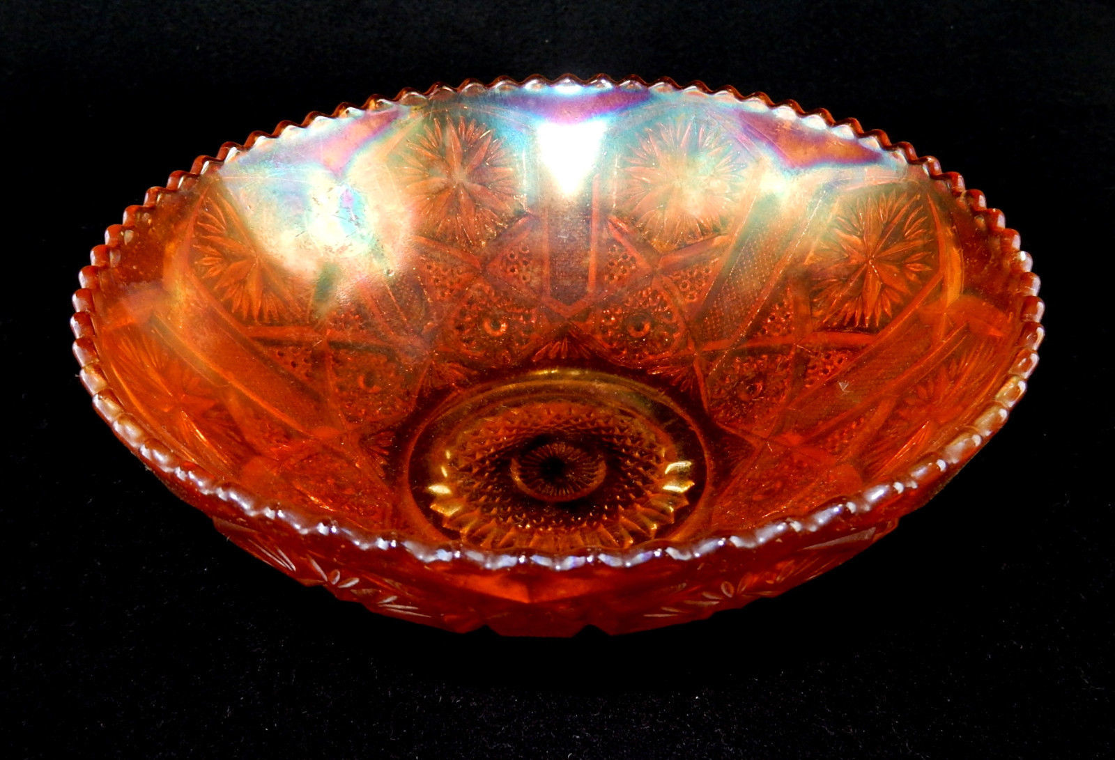 Round Serviing 7" Dish Peach Iridescent Carnival Glass, Gold Carnival Glass