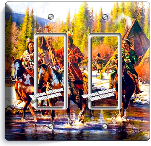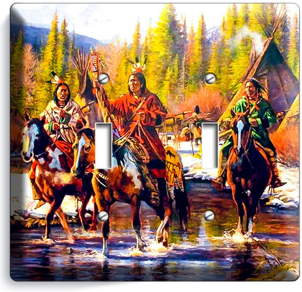 NATIVE AMERICAN INDIANS RIVER LIGHT SWITCH OUTLET WALL PLATE ROOM ART HOME DECOR