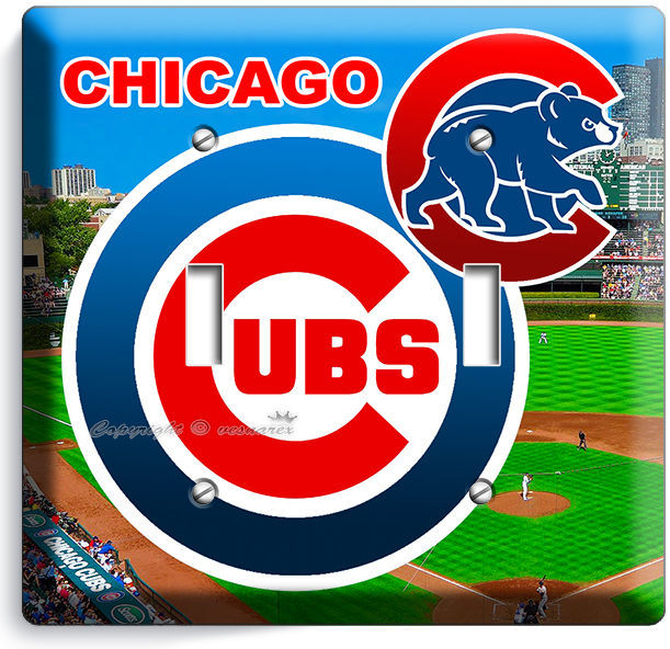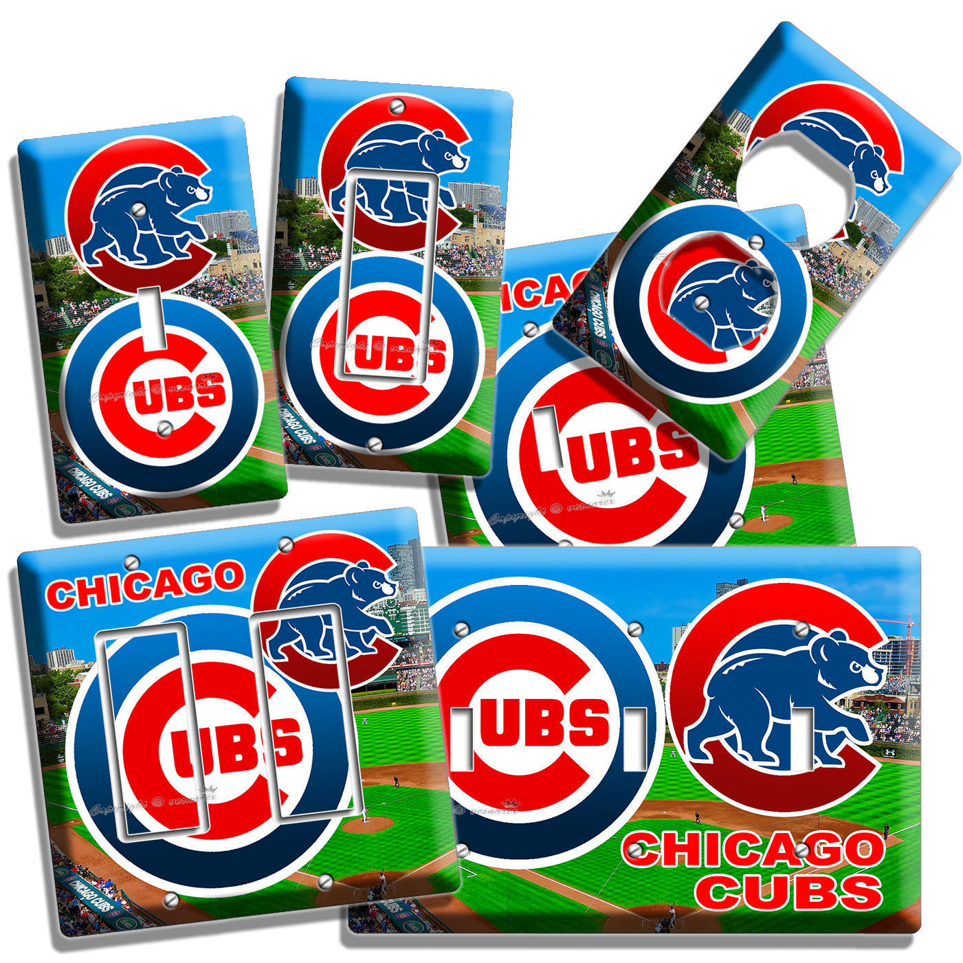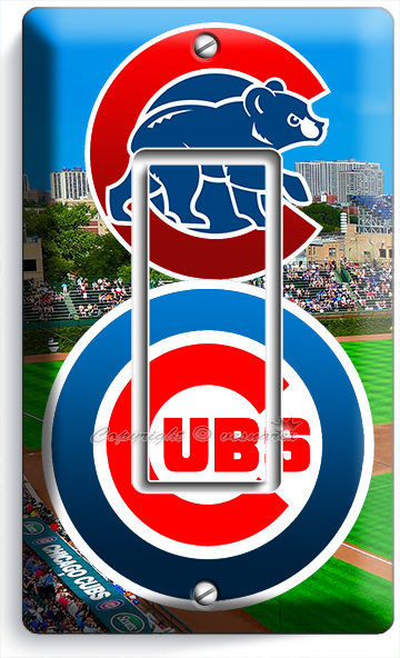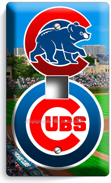 CHICAGO CUBS BASEBALL TEAM LOGO LIGHT SWITCH OUTLET PLATE MAN CAVE TV ROOM DECOR