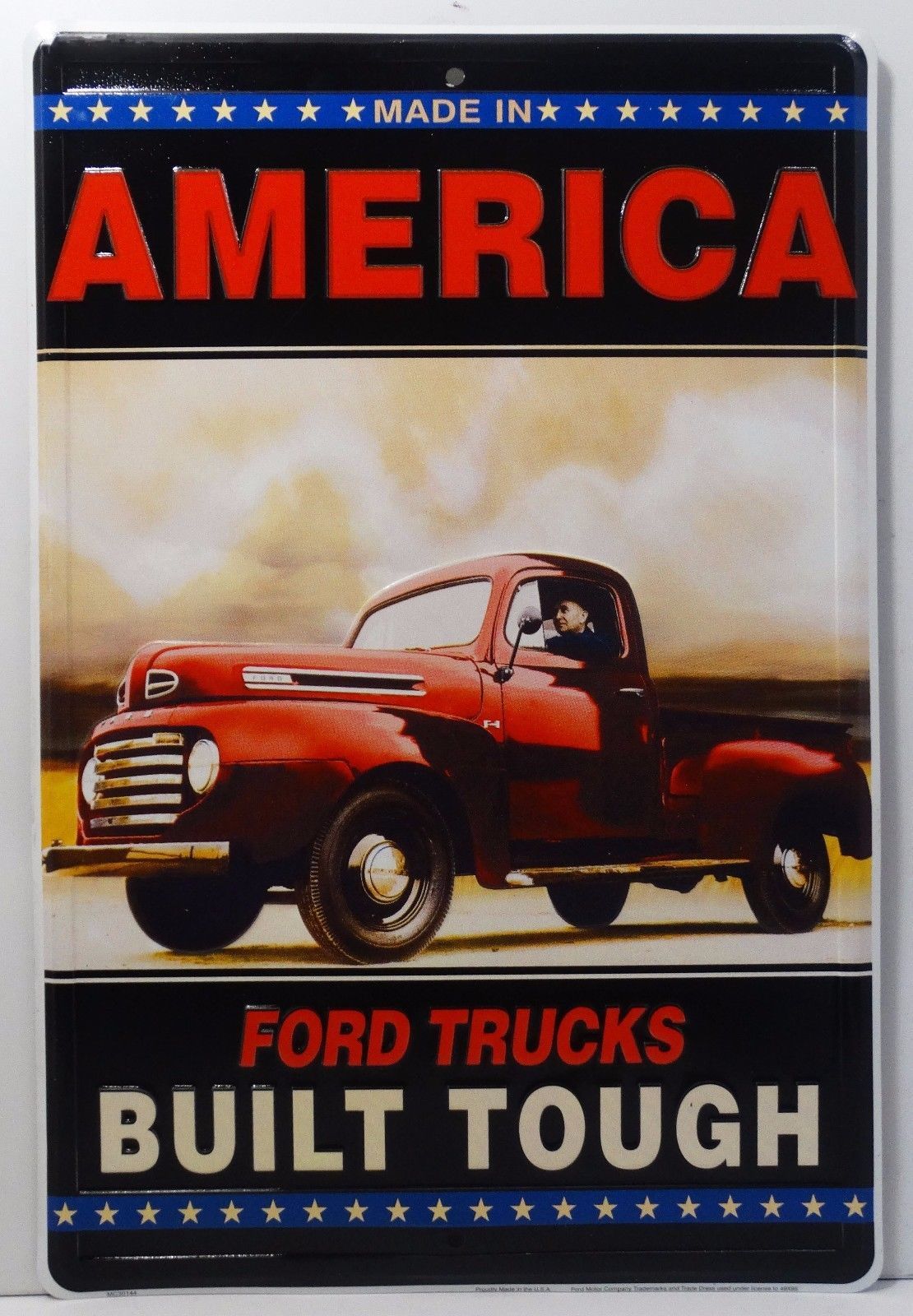Ford Trucks Built Tough Made in America Embossed Metal Sign