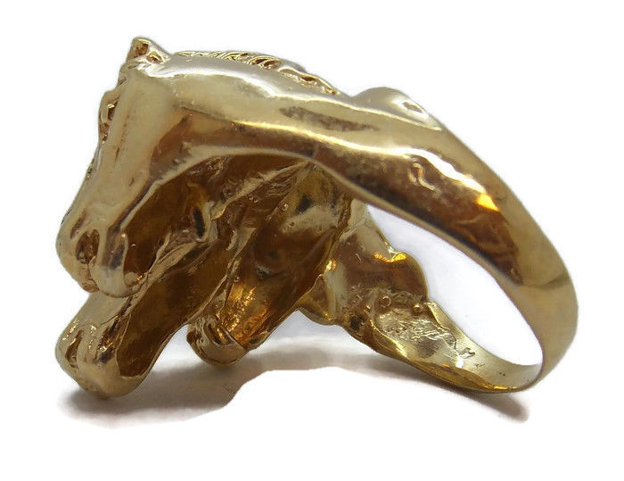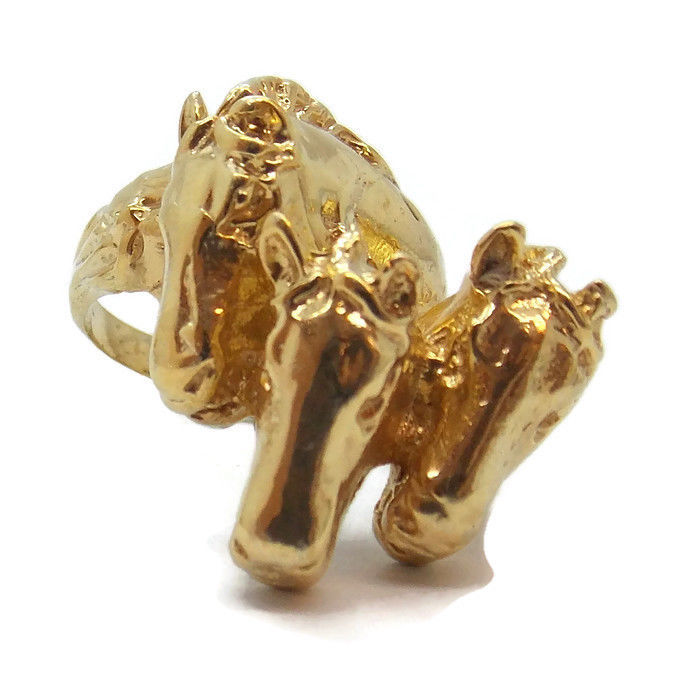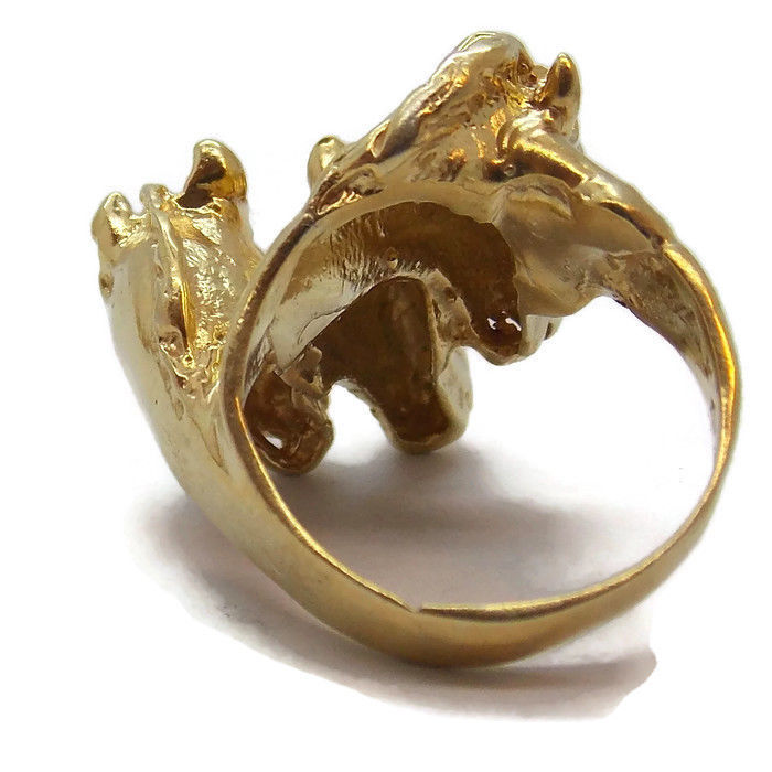 Authenticity Guarantee Horses Unisex Ring 14k Solid Yellow Gold.