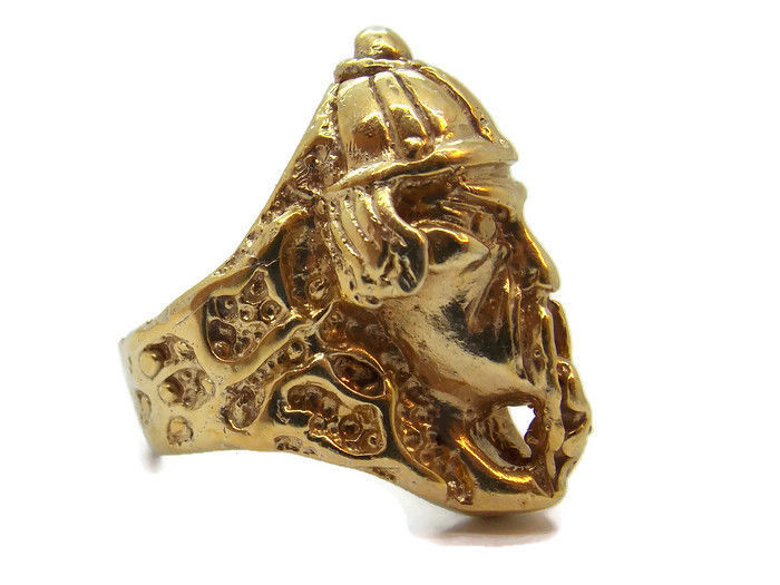 Authenticity Guarantee Samurai Warrior Men's Ring 14k Solid Yellow Gold.