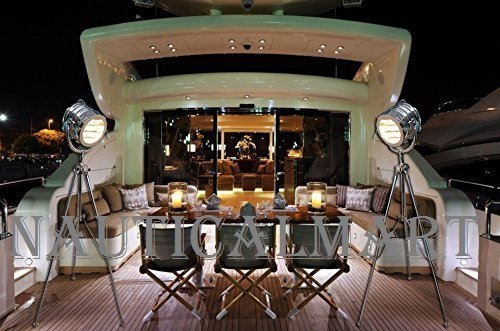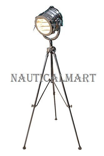 Hand Made with Professional Tripod tripod lamps are hand made replicas of designs inspired by Old Hollywood, grand cruise ships and those commissioned in the 1940's by the US and Royal Navy. Signal lights like these were once used to communicate vital information via Morse code to allied forces. Today they are on interior decorator's top10 list for home theater rooms, offices, yacht clubs and seafood restaurants. Large Polished Chrome Lamp Tripod color: Stainless Steel Materials: Stainless Steel, Aluminum Telescopic tripod Crank wheel is easily adjusted Hand crafted by Avion Innovative's factory partners in India. Minor imperfections in finish are to be expected making each piece unique. Global standards available. Uses a 60W Edison or standard screw bulb (not included)